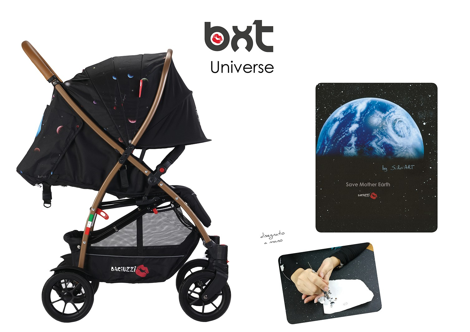 Area Zero+ omologato secondo la normativa R-129 I-Size (da 40 a 75 cm). Accessori inclusi: capottina, copertura per le gambe che si recupera dalla carrozzina, cestino e borsa.