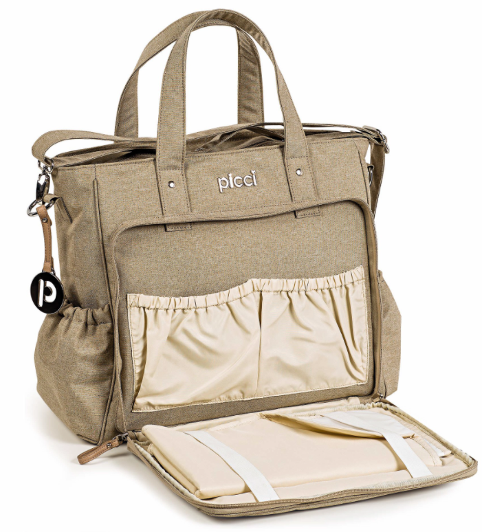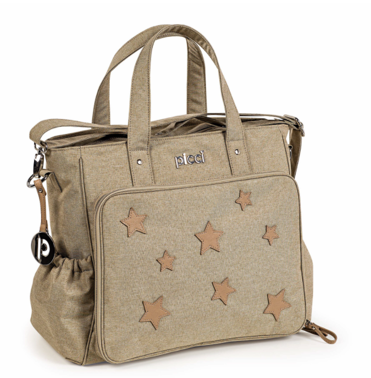 La Borsa per mamme della linea Star è stata realizzata in tessuto idrorepellente, è dotata di una tracolla regolabile e due manici per fissarla a un passeggino o trasportarla facilmente come una borsetta. Con molte tasche e un'organizzazione interna impeccabile, dispone di una cerniera esterna che contiente un fasciatoio da viaggio super pratico e coordinato.