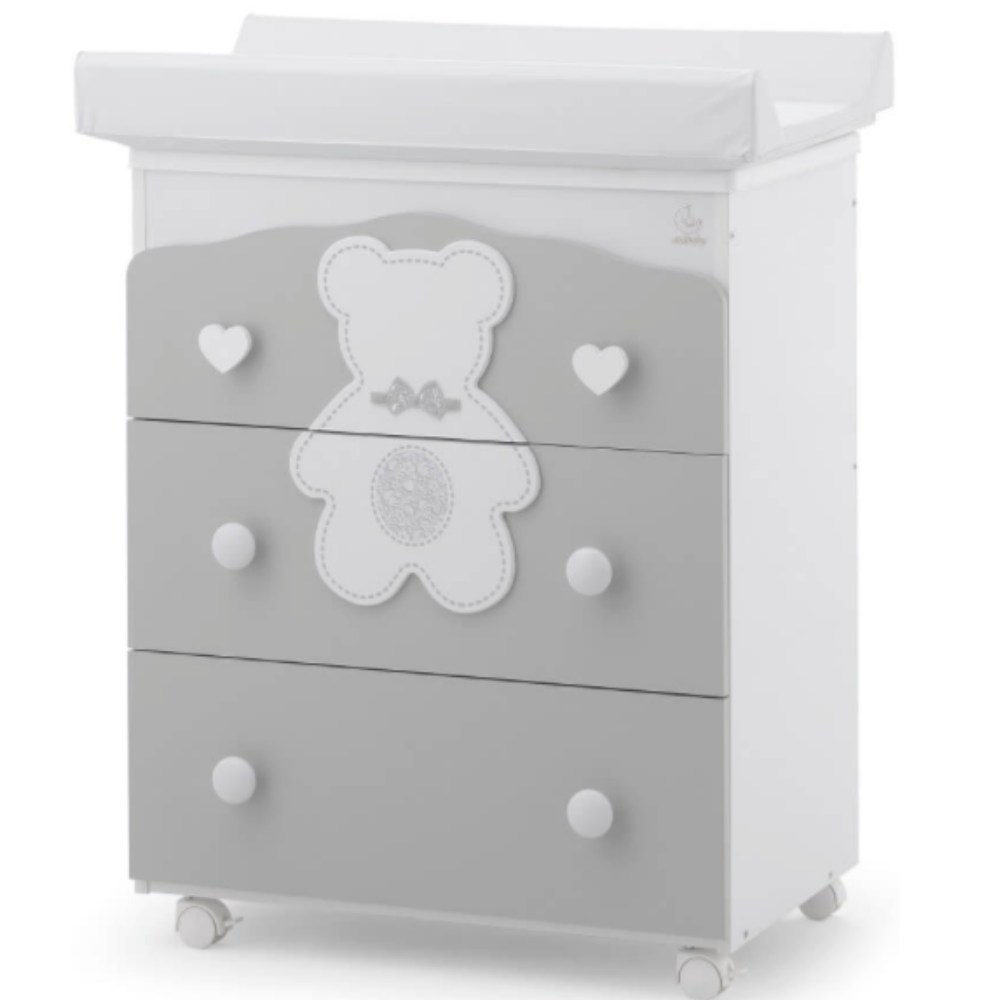 Letto cm.80 x 130 x 118H, Copripiumino cm. 70 x 130, Lenzuola cm. 63 x 125, Bagnetto cm. 51 x 81 x 102 h.