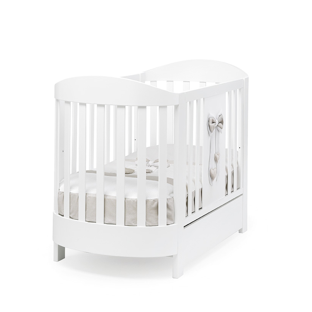 Lilli è l'elegante collezione realizzata da Erbesi. La cameretta è dotata di un lettino a lunetta davvero pratico e funzionale che arriverà completo di materasso e set lenzuola coordinato.