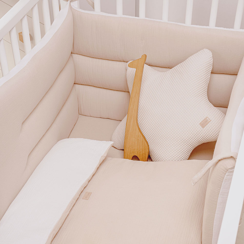 Paracolpi giro letto imbottito, color sandalo con rivestimento in puro Cotone Naturale.