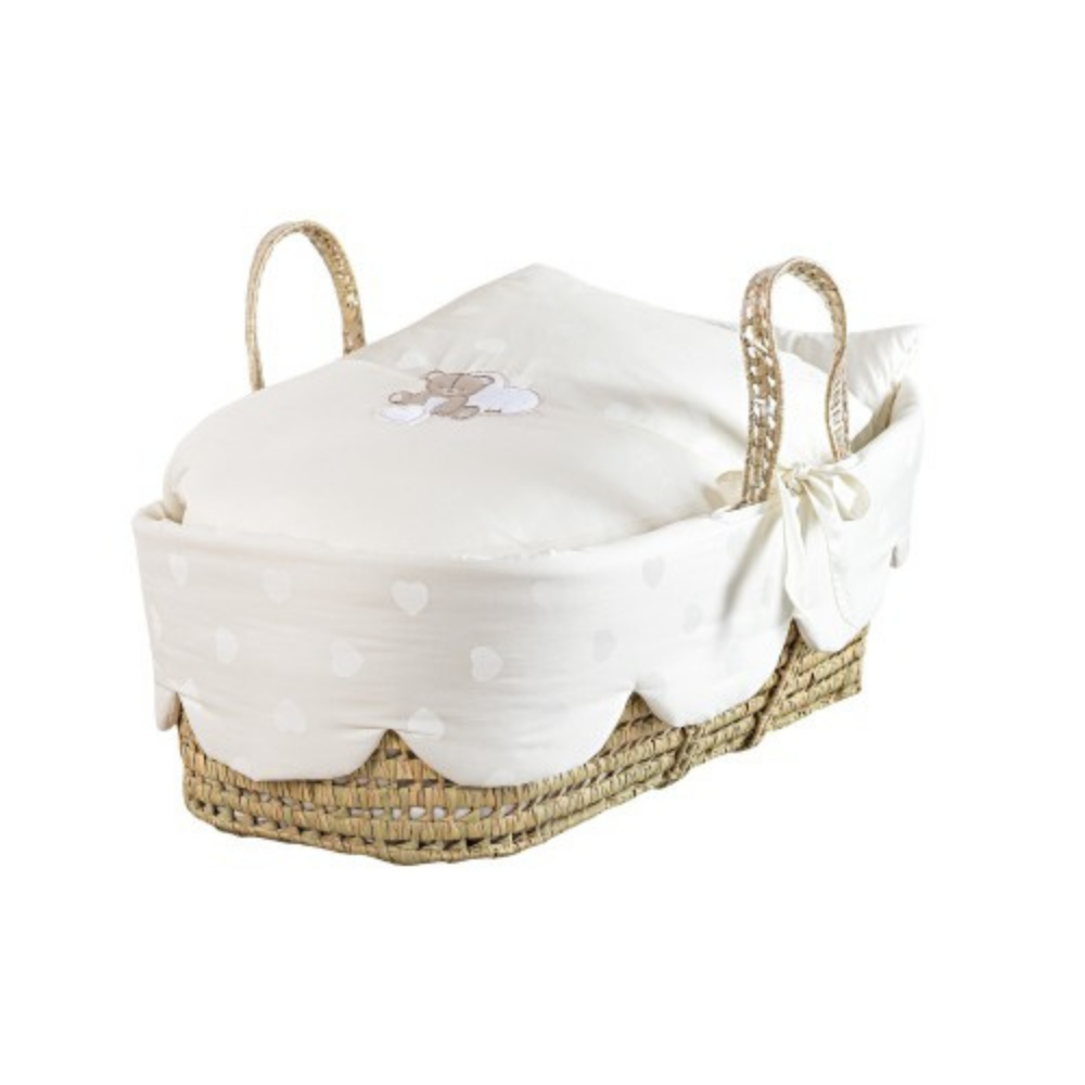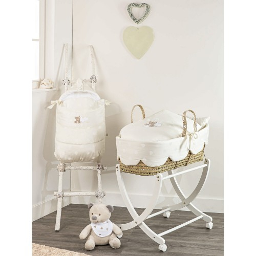 Puposhop vi propone la cameretta completa: lettino, bagnetto e fasciatoio tessile.