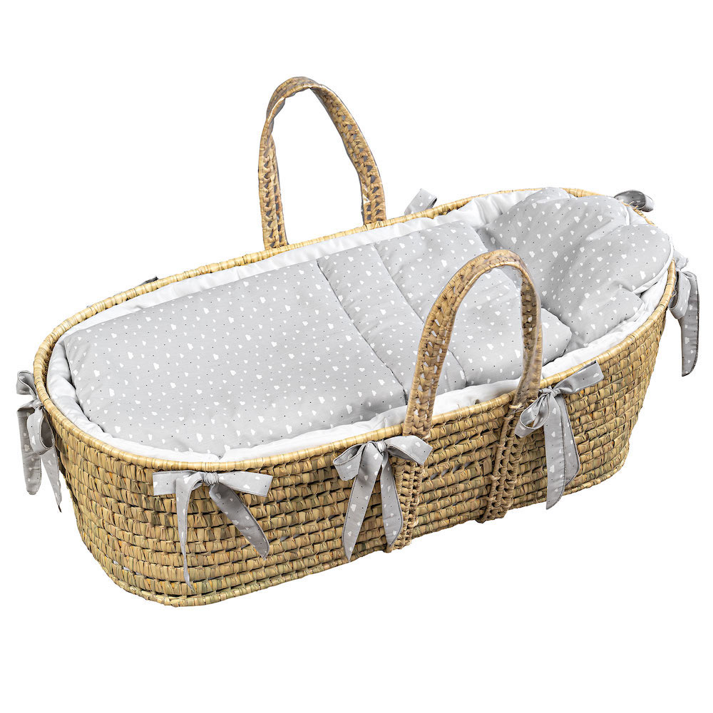 Cesta Porta bebè in palma completa di piumetto Grigio perla e materasso.