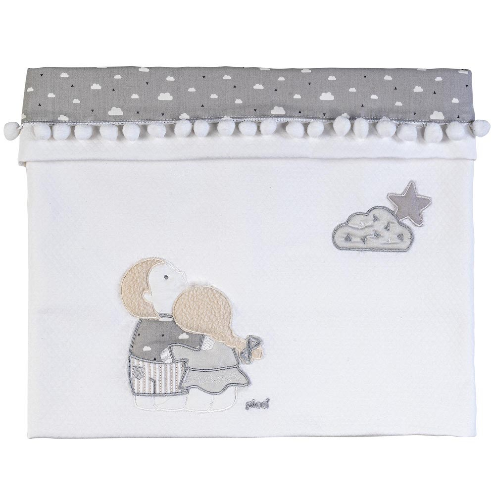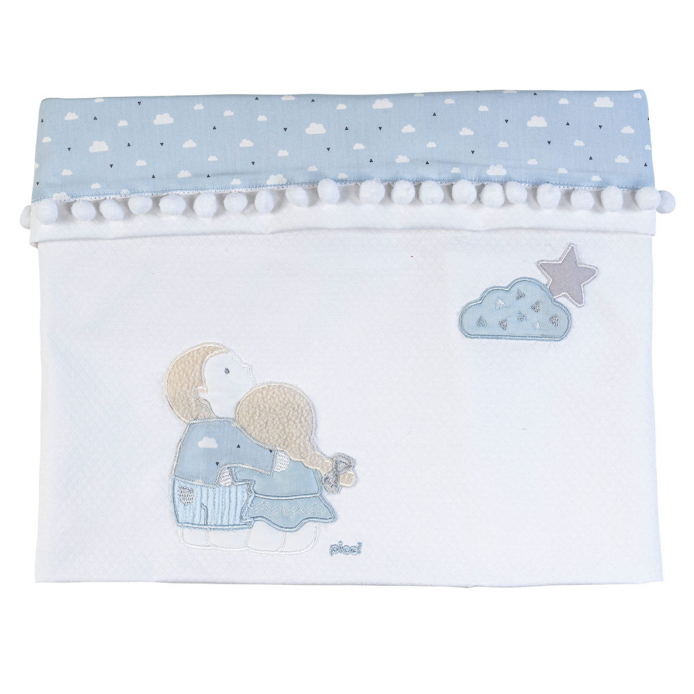 Copertina per culla/carrozzina in tessuto Piquet ricamata Lollipop. Vi conquisteranno i dettagli di questa nuovissima linea! I ricami danno vita a due bimbi che sognano guardando le stelle.