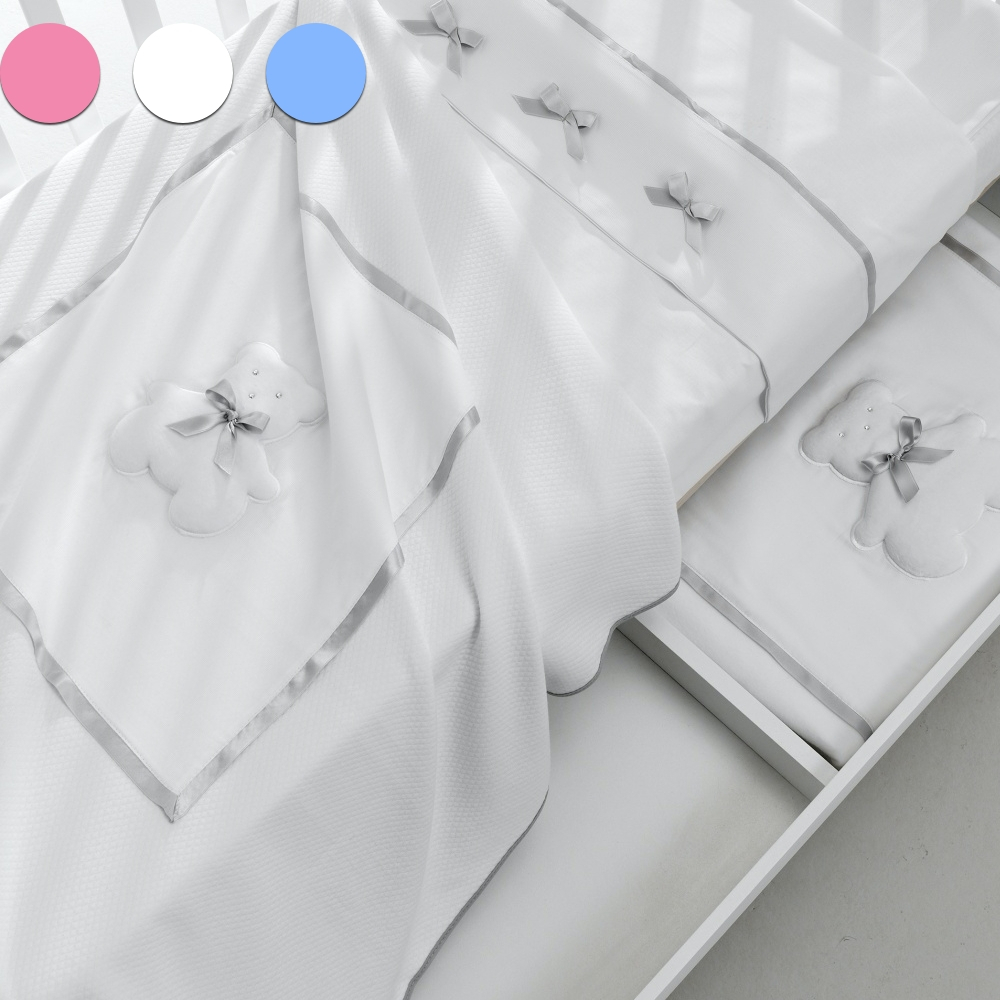 Sul nostro shop è possibile scegliere il colore dei fiocchi del settimino, del lettino e quello del Piumone paracolpi.
