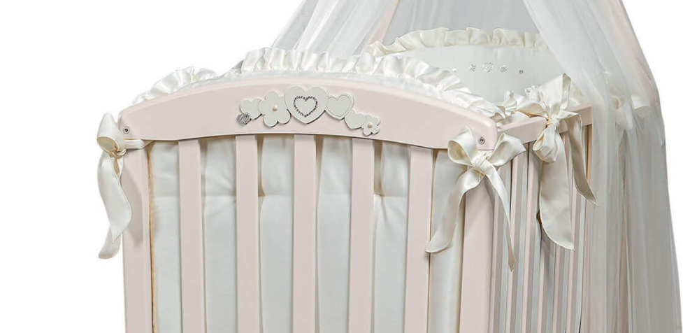 La Culla principesca della linea Luxury Flora di Picci, delicata e romantica evoca il fascino di un eleganza senza tempo.