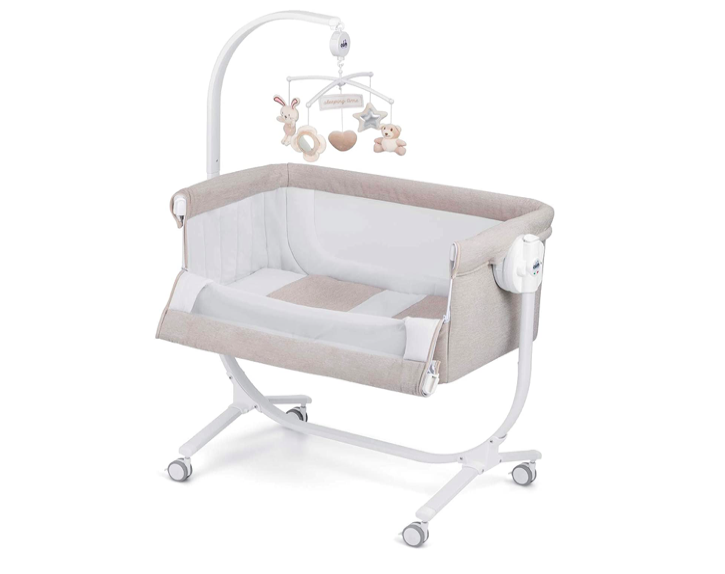 La Cullami offre 8 altezze regolabili, un'apertura nella sponda anteriore per la funzione di co-sleeping, una posizione antirigurgito, un movimento orizzontale della culletta (con escursione fino a 16 cm) per adattarsi a tutti i tipi di letti e una funzione dondolo. Con le sue 4 ruote piroettanti, di cui 2 con freno, e le cinghie per il fissaggio al letto, è facile spostare la culla da una stanza all'altra. Il tessuto è sfoderabile e lavabile a mano a 30°. Adatta per bambini da 0 a 9 kg.