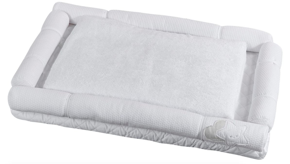 Questo Fasciatoio super soffice, realizzato in Italia, dispone di imbottutura laterale che renderà più sicuro il momento del cambio del vostro bimbo.