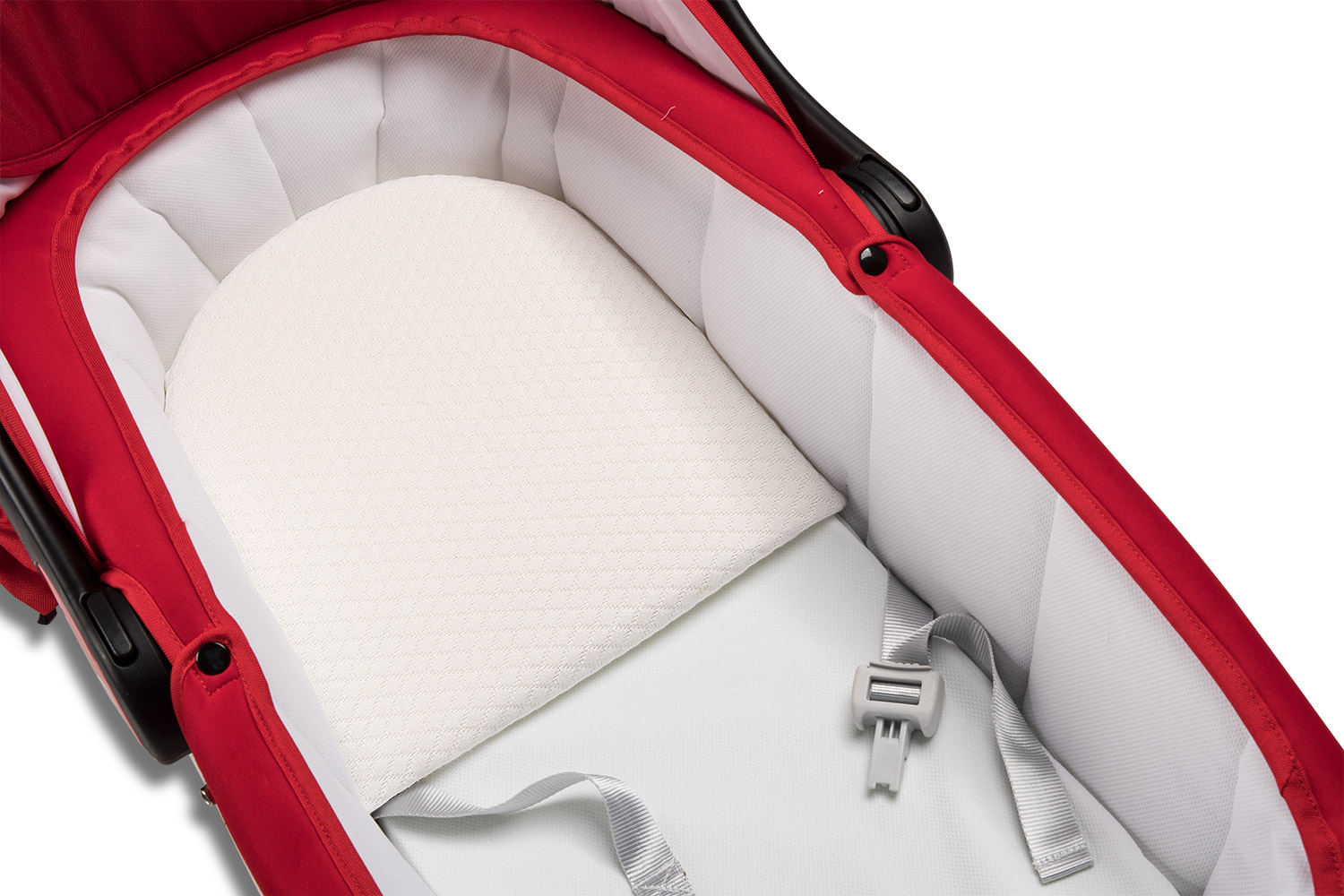 La federa di rivestimento è trattata Antiacaro, il tessuto stretch a rombetto è in grado di mantenere fresco, asciutto e comodo il neonato.