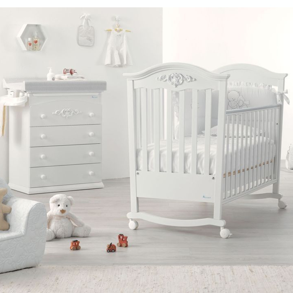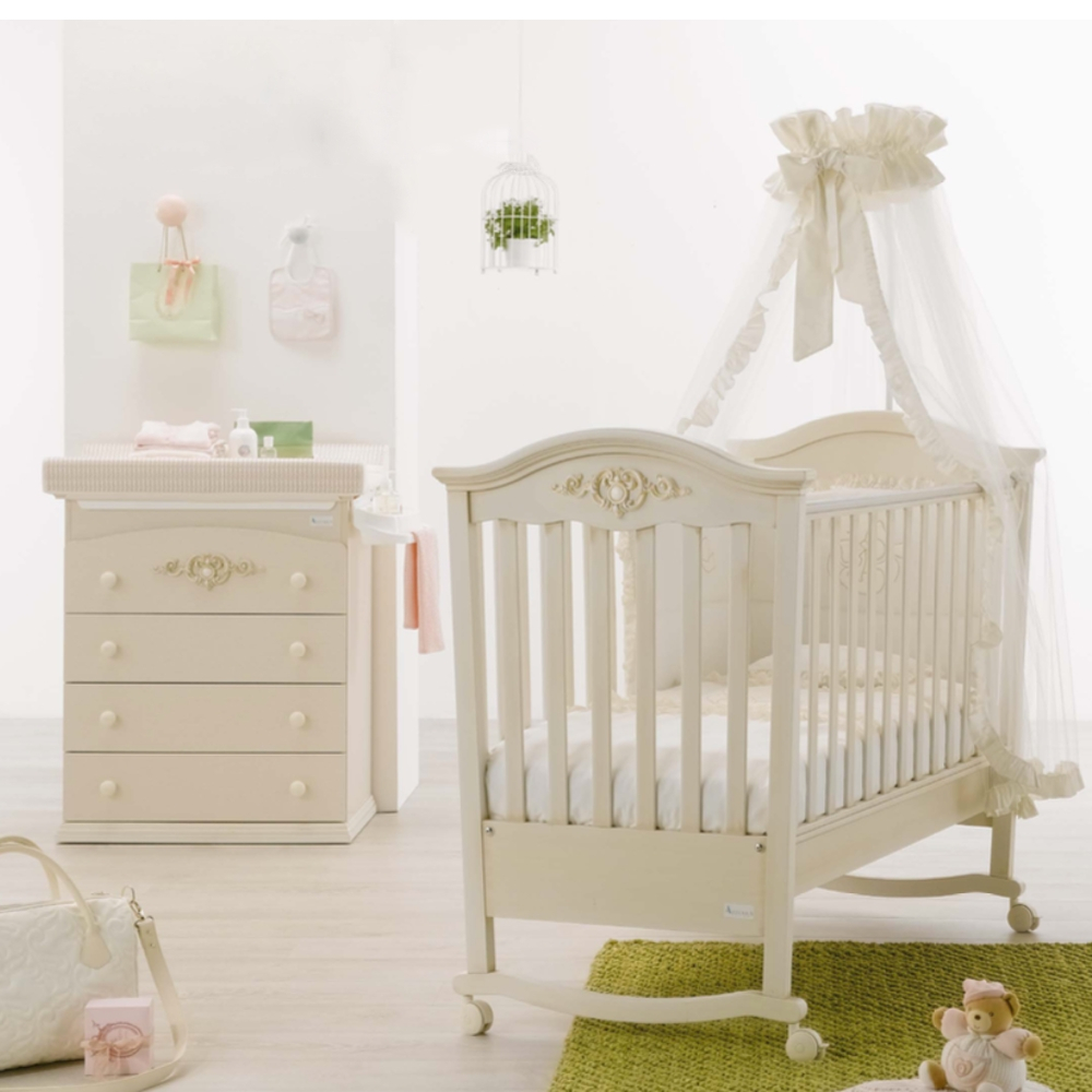 Il lettino pregio è dotato di dondolo e cassettone ampio utile per riporre tutto l'accorrente dei vostri bambini.