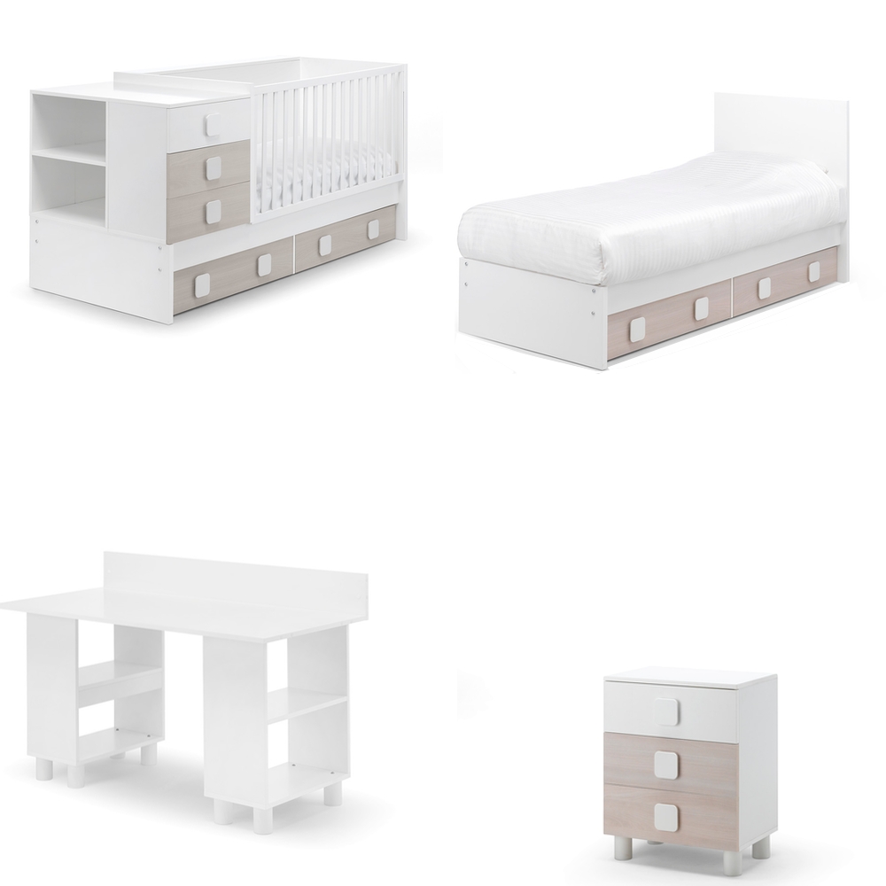 Il lettino si trasforma in un letto da una piazza singola, e dalla struttura si ricava il comodino e una confortevole scrivania.