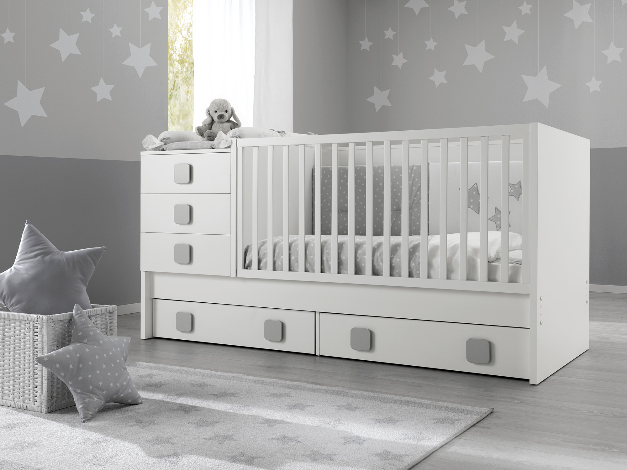 Easy è il nuovissimo lettino di Erbesi che cresce e si trasforma con il vostro bambino, fino all'adolescenza. Il Lettino è perfetto per ospitare un neonato e grazie al piano per il Fasciatoio,