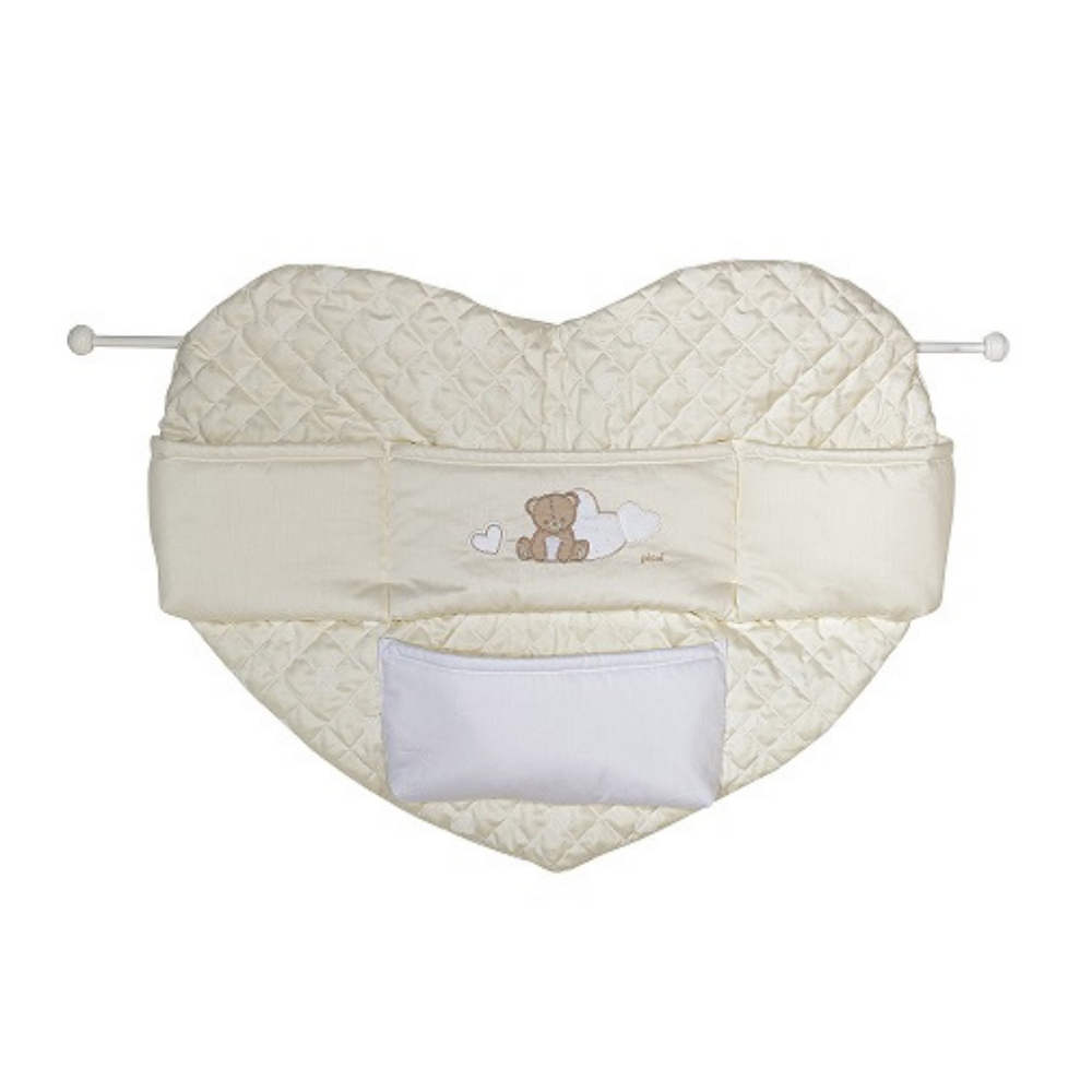 Il pannello a forma di cuore, sarà perfetto per riporre il necessario per il bagnetto dei bambini e arredare con stile la cameretta.