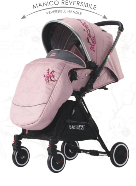 Telaio in alluminio con seduta reversibile (fronte mamma 0-12 mesi e fronte strada 12-36 mesi) grazie al meccanismo brevettato Via Vai System Reverse,