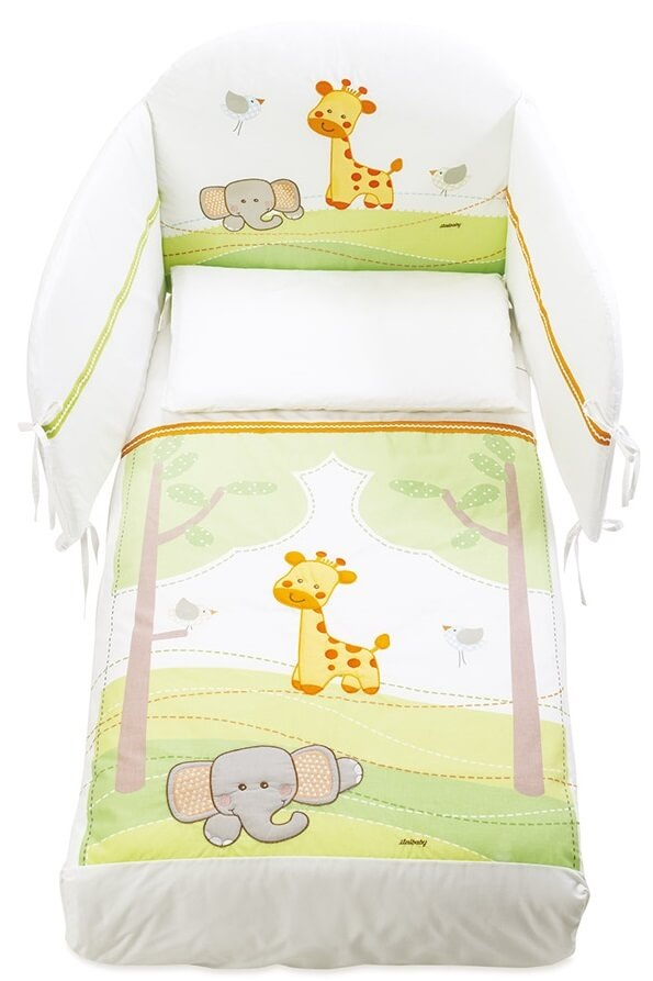 Dimensioni: Piumino Standard, Paracolpi cm. 55 x 184, Federa cm. 40 x 60.