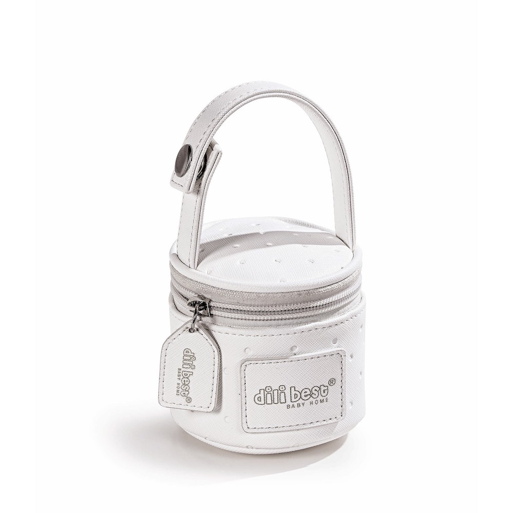 Esclusivamente Made in Italy, è l'ideale per avere il ciuccio sempre a portata di mano, magari fissato direttamente al passeggino. La chiusura con zip e il manico dotato di bottone a pressione lo rendono estremamente facile e funzionale.