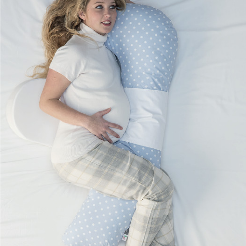 Questo cuscino a forma di “L”, è pensato per aiutare la futura mamma durante il sonno, consentendo un appoggio per schiena e gambe, regolabile in base allo stato di avanzamento della gravidanza.