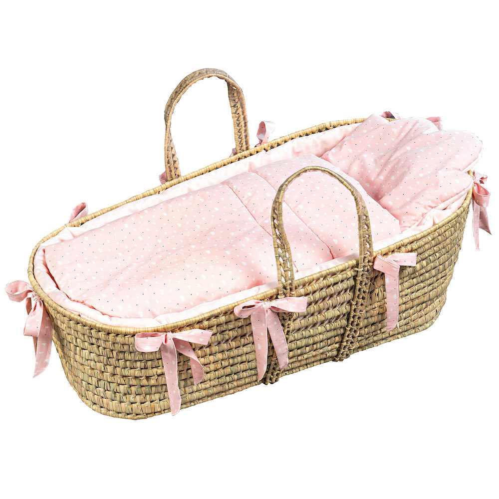 Cesta Porta bebè in palma completa di piumetto Rosa e materasso.