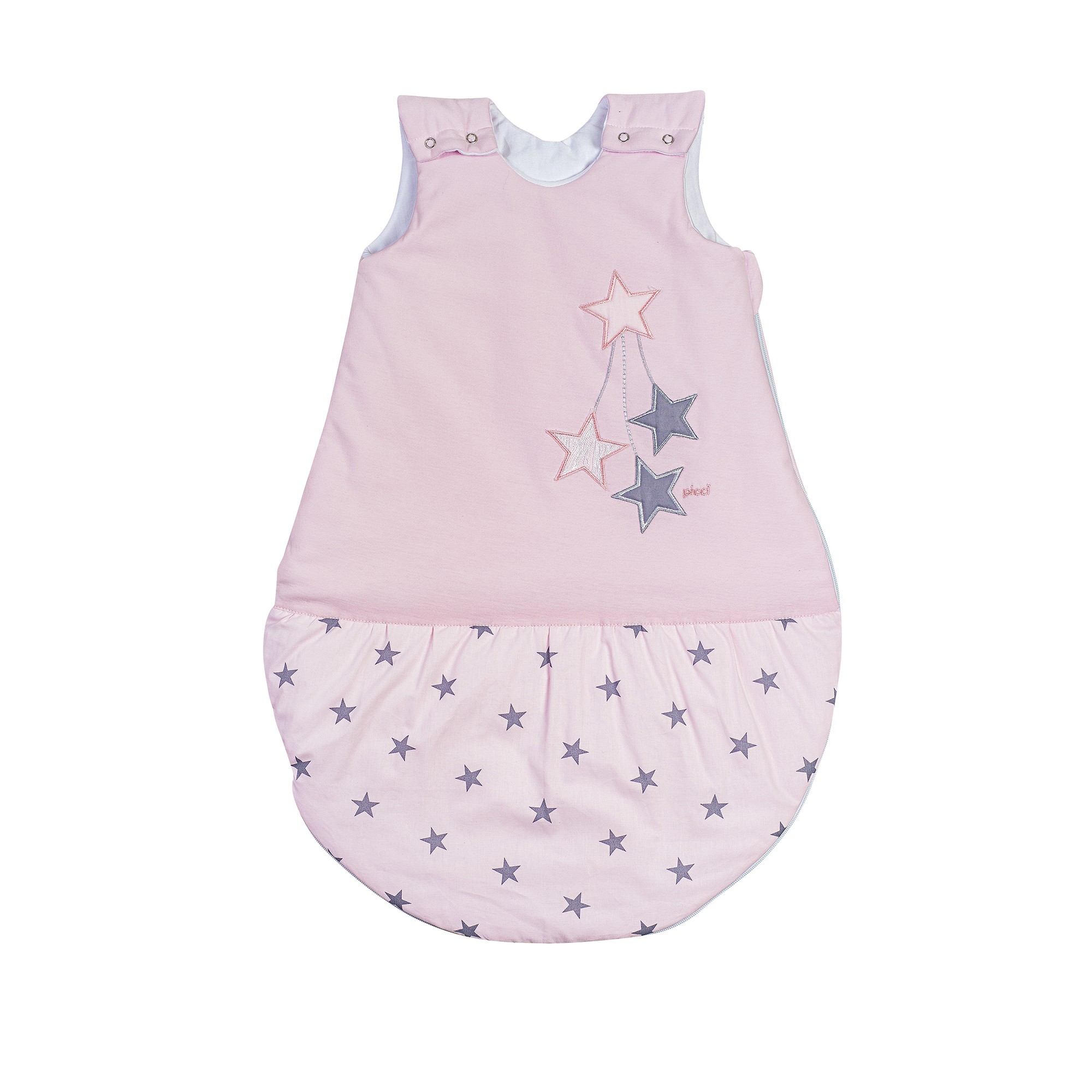 Il sacco nanna Stella è chiuso sia sul fondo che lateralmente, questo modello è dotato di comode "bretelle" da aggangiare alle spalle del bimbo, proprio come se si trattasse di una salopette.