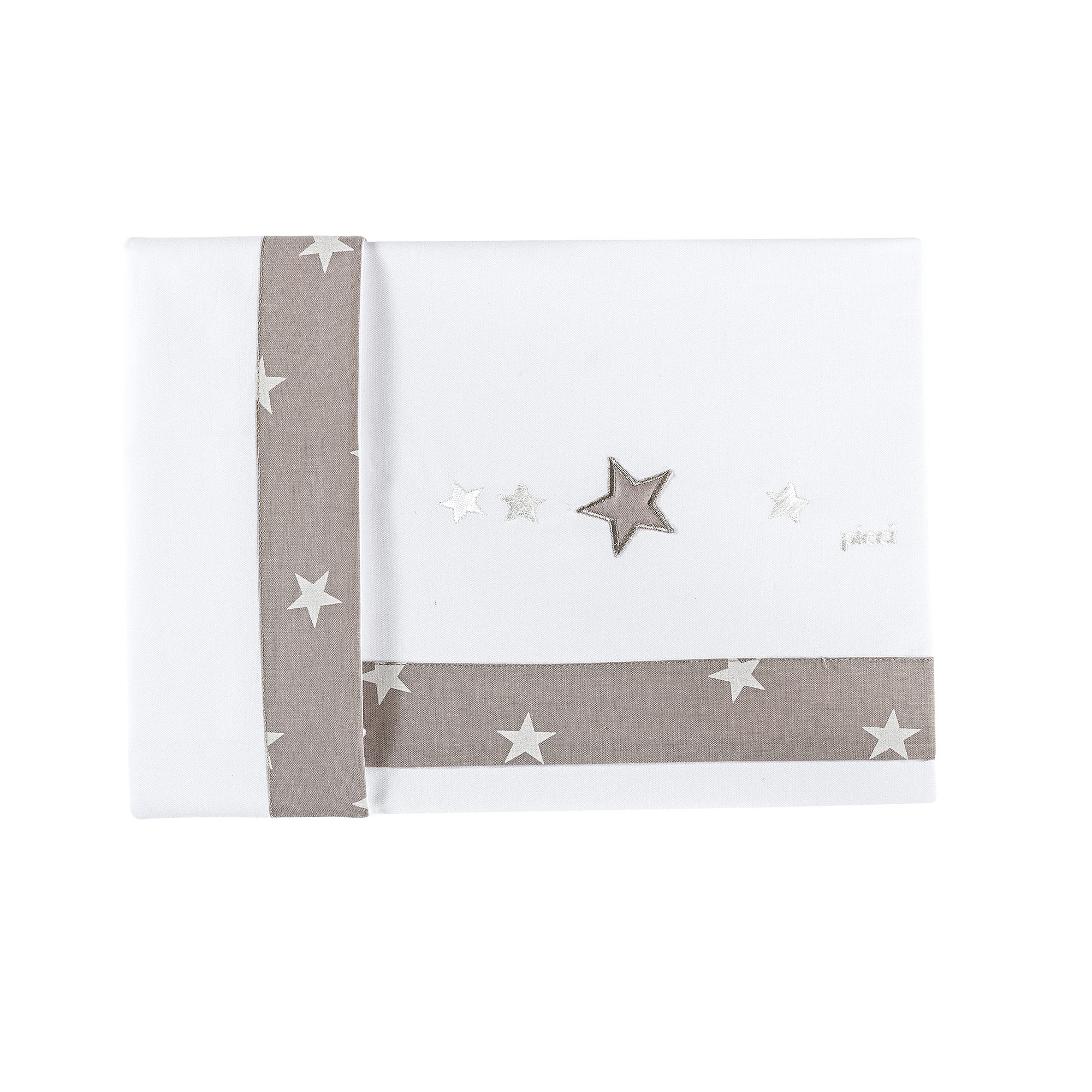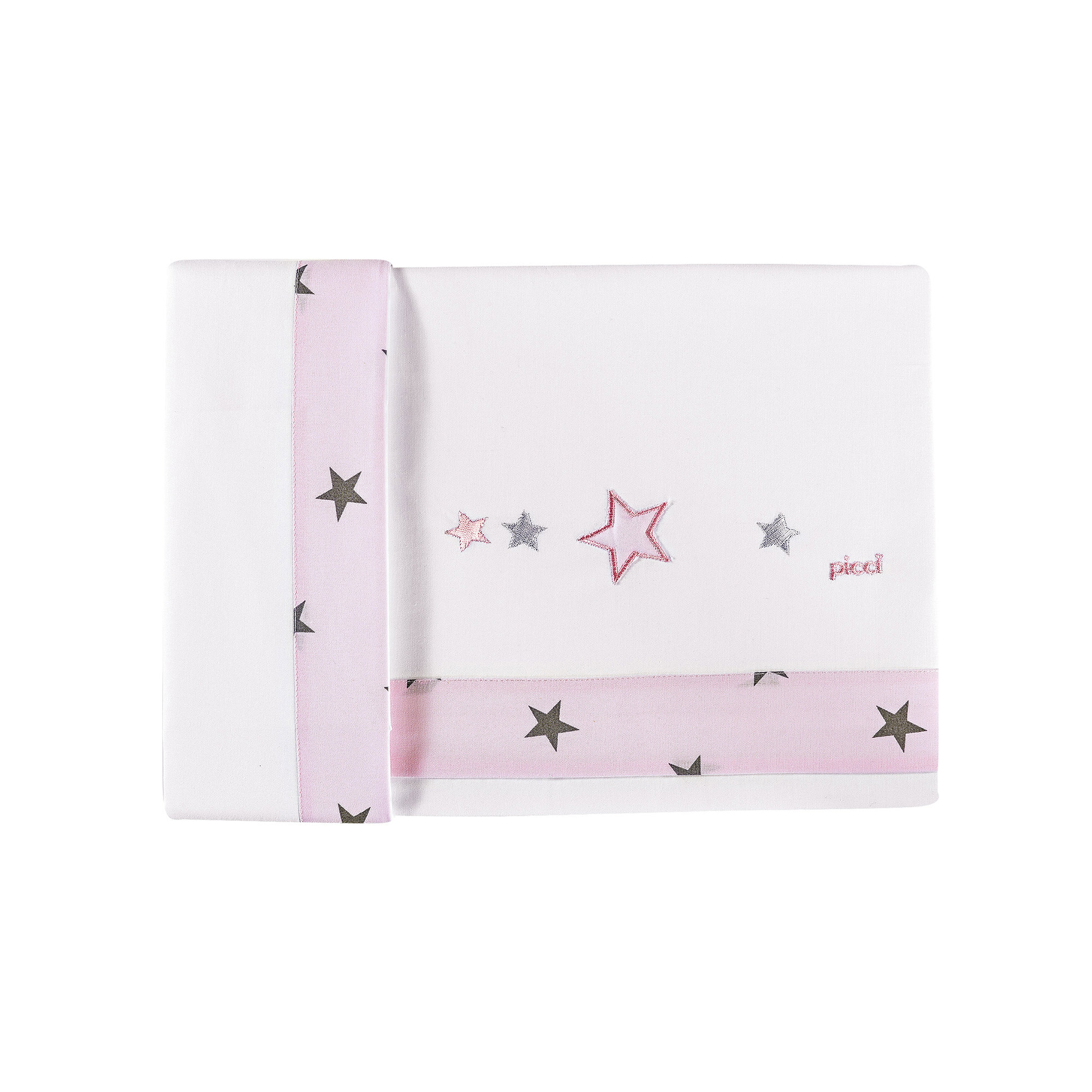 Il set Lenzuola Picci è realizzato in puro Cotone e arricchito da stelline ricamate.