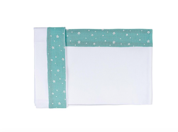 Set Lenzuola bianco con bordo color menta e Stelle.