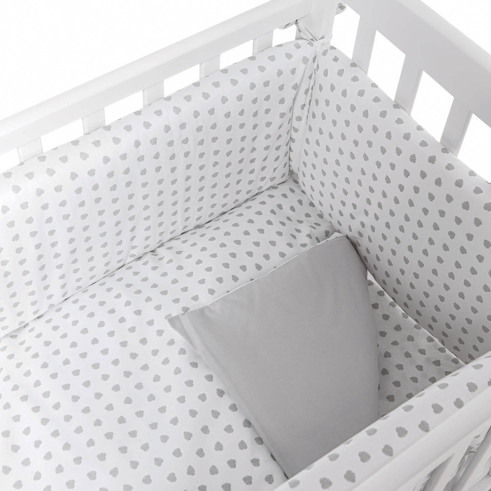 Il set con fantasia a foglie di Picci è perfetto per completare la culla-letto realizzata da Picci. Il set è realizzato con materiali antisoffoco, rivestito esternamente in cotone.