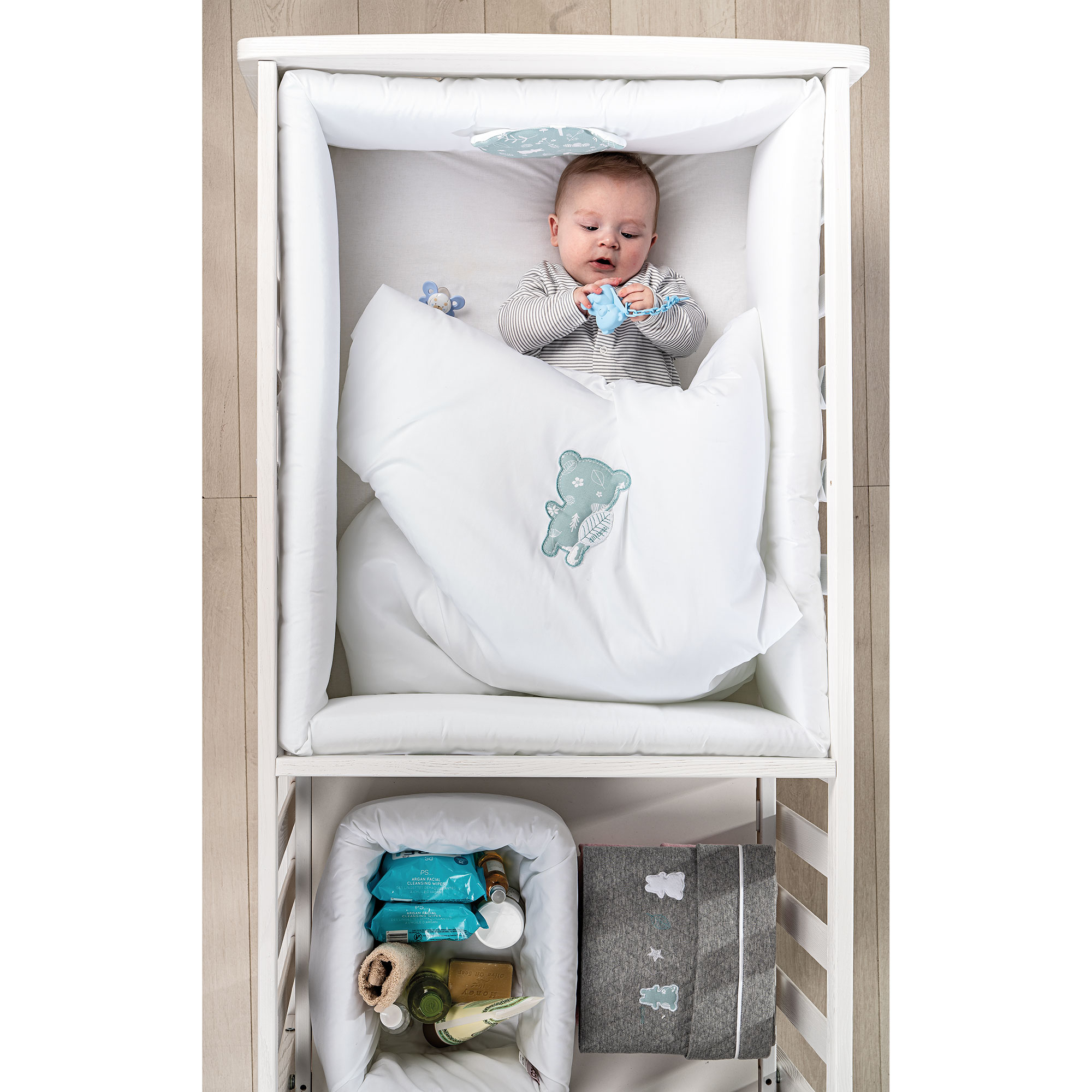 Il letto Ozzy che troverete sul nostro Shop, si trasforma in microletto per i neonati e grazie a questo set tessile, i vostri bimbi potranno dormire in un ambiente protetto, morbido e sicuro.