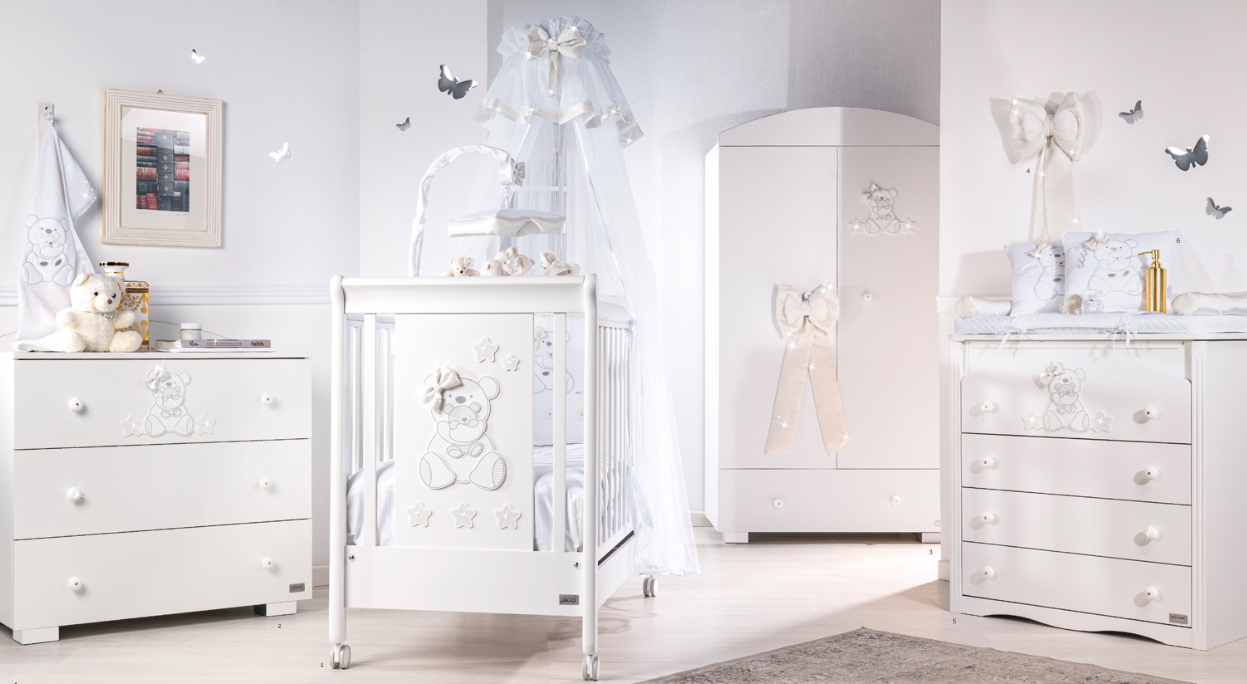Vanity è una collezione davvero Dolce ed Elegante. Questa cameretta arriverà completa di tutto ciò che serve per prendervi cura del vostro bambino.