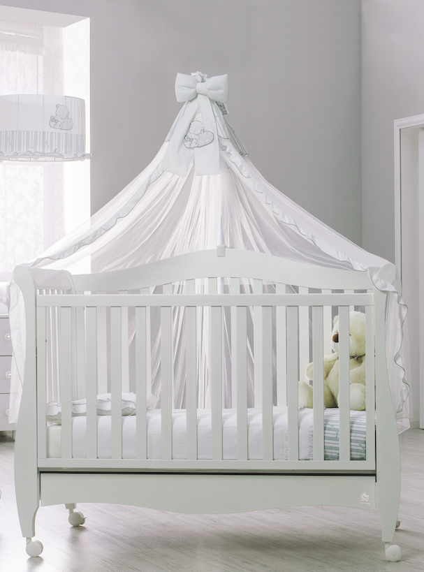 Questo velo, dotato di asta universale, avvolge l'intero lettino, così da proteggere i vostri bimbi dagli insetti e conferire alla cameretta un'aria fiabesca.